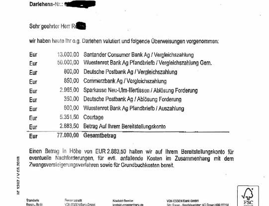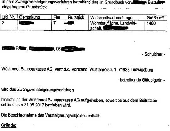 Die Zahlungen wuchsen ihm über den Kopf und das Zwangsversteigerungsverfahren war bereits eingeleitet. Die erste Einstellung erreichte er selbst, indem er sein letztes vorhandenes Kapital der betreibenden Gläubigerin anbot. Diese stellte daraufhin das Zwangsversteigerungsverfahren für 6 Monate ein. Nun sollten wir uns um die Finanzierung kümmern. Hier mussten wir beachten, dass aufgrund seines Alters nur eine gewisse Darlehenssumme finanziert werden konnte. Das bedeutete auch in diesem Fall, mit den Gläubigern auf Teilforderungsverzicht zu verhandeln.